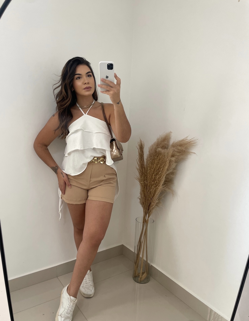 Tamanho: Único, veste até 44. Possui amarração no pescoço e elástico nas costas.
